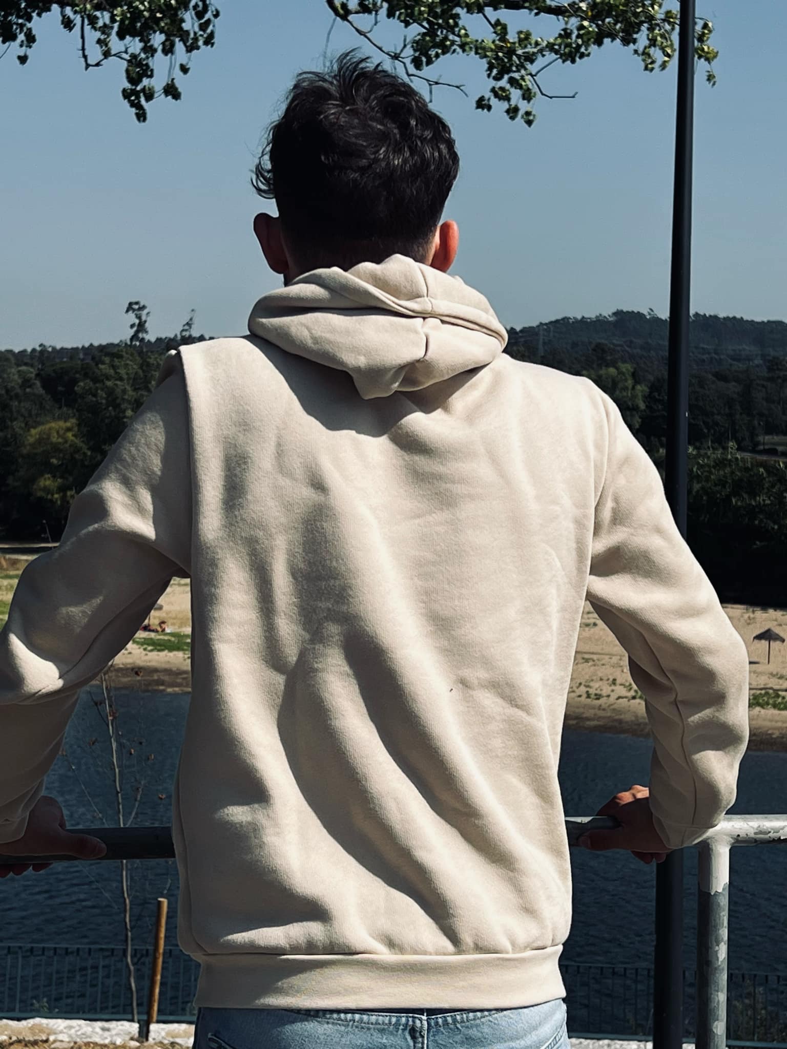 A Areia Neutra é aquela camisola com capuz que transmite calma, elegância e autenticidade. O tom bege é perfeito para criar looks minimalistas, modernos ou naturais — fácil de combinar com qualquer paleta de cores.