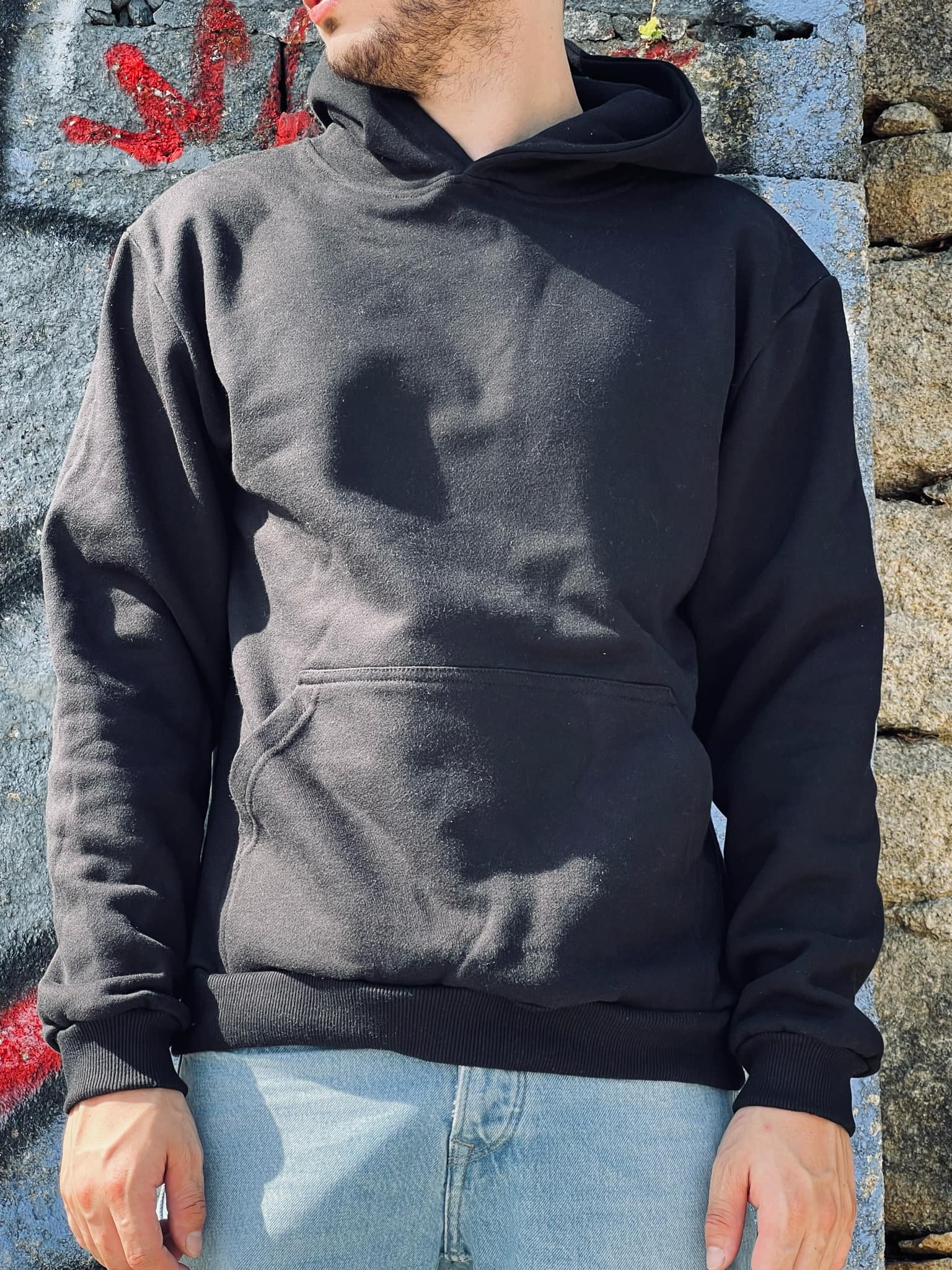 Com corte unissexo, capuz ajustável e bolso frontal tipo canguru, ela combina funcionalidade com estilo. O tom preto profundo é versátil e intemporal – uma base perfeita para qualquer outfit.