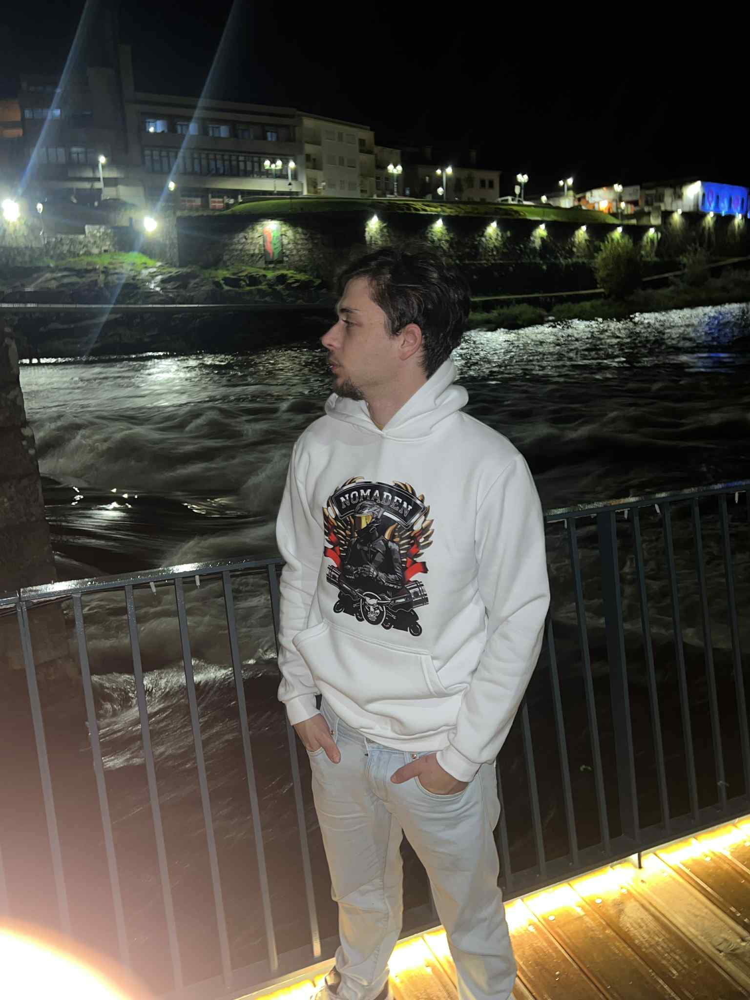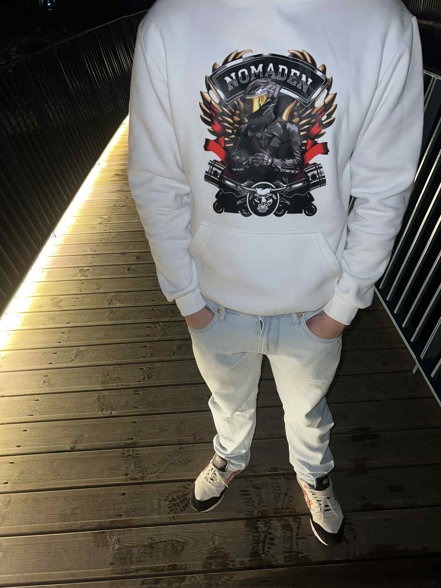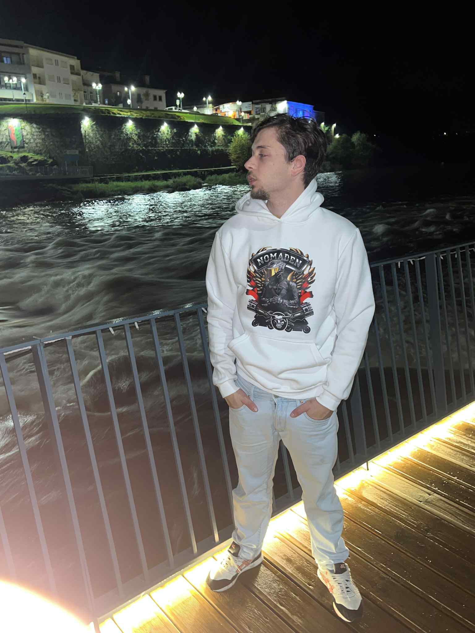 O hoodie Nomaden Skull Rider combina atitude e estilo. Feito em tecido macio e confortável, traz uma estampa frontal poderosa com inspiração motard, ideal para quem vive na estrada e valoriza a liberdade. O design marcante e as cores vibrantes destacam-se em qualquer look urbano.